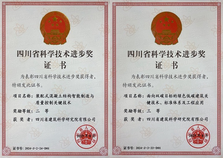 近日,四川省科學技術獎勵大會公布2024年度四川省科學技術獎獲獎名單,建科院在智能制造和綠色低碳技術領域的2項成果,分別獲得省科技進步二等獎、三等獎。 此次獲獎彰顯出建科院在建筑產業轉型升級中的科技核心競爭力。存量提質背景下,建科院正加強科技創新與產業創新緊密互動,加快形成新質生產力,為四川建設建筑強省貢獻科技力量。
